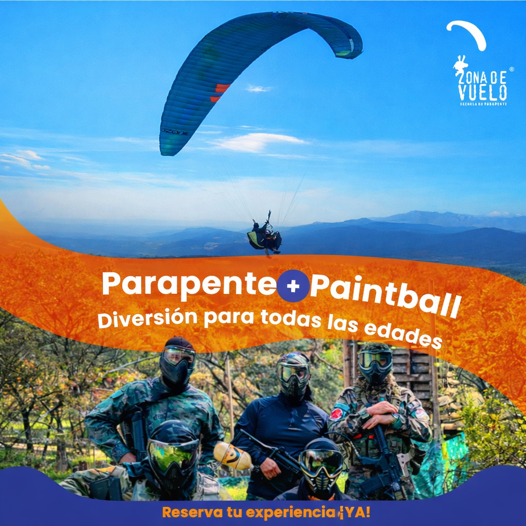 Una combinación para quienes buscan vivir la adrenalina del vuelo y la emoción del juego en equipo. El valor es de $255.000 por persona. El paintball requiere grupos de mínimo 4 participantes.